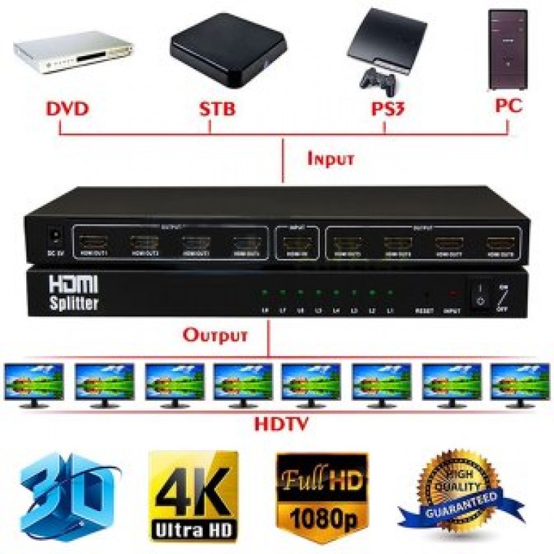 K * 2K HDMI V1.4 FULL HD 3D TV 8-Way 1x8 amplificatore digitale Splitter