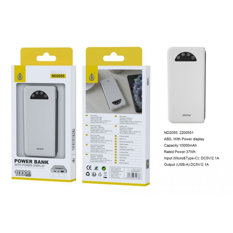 Con il Power Bank 10.000mAh con Indicatore di Batteria, puoi monitorare l’energia disponibile e ricaricare i tuoi dispositivi in modo sicuro e pratico, ovunque tu sia.