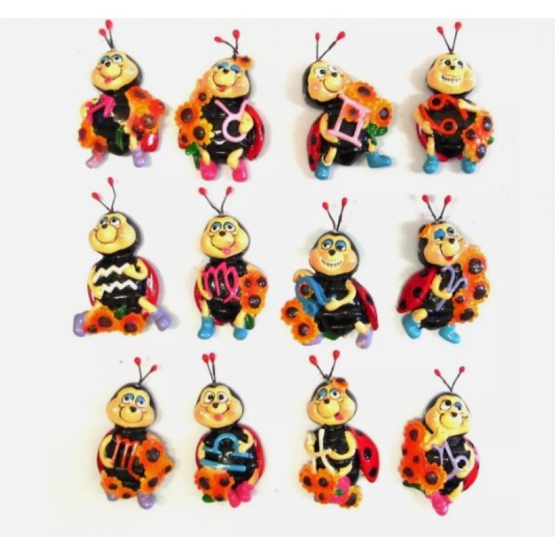 CALAMITA IN RESINA COCCINELLA CON ZODIACO PORTAFORTUNA;FRIDGE MAGNETS LADYBUG