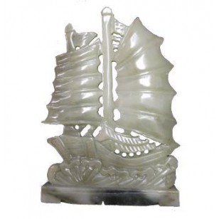 - STATUA ARTIGIANALE GRANDE FORMATO BARCA IN POLVERE DI GIADA E Resina