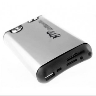 USB 2.0 Mini Hard Drive Media Player, perfetto per l'archiviazione, interfaccia IDE, portatile con la funzionalità aggiunta di un lettore multimediale per MP3 o file video. Questo lettore multimediale acompatibile con hdd fino a 160 GB(superiori non abbiamo avuto occasione di testarli) collegabile al vostro stereo o televisore per riprodurre video, musica e foto digitali. Altri bonus includono un lettore SD / MMC e USB per il trasferimento dei file sul disco rigido, un trasmettitore FM per inviare l'audio direttamente al tuner FM(il trasmettitore potrebbe non funzionare al meglio a causa dell'intasamento delle frequenze presenti in Italia)
