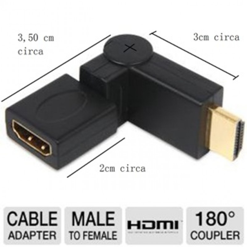 - Adattatore ANGOLARE PROLUNGA DOPPIO SNODATO HDMI M/F 360 gradi