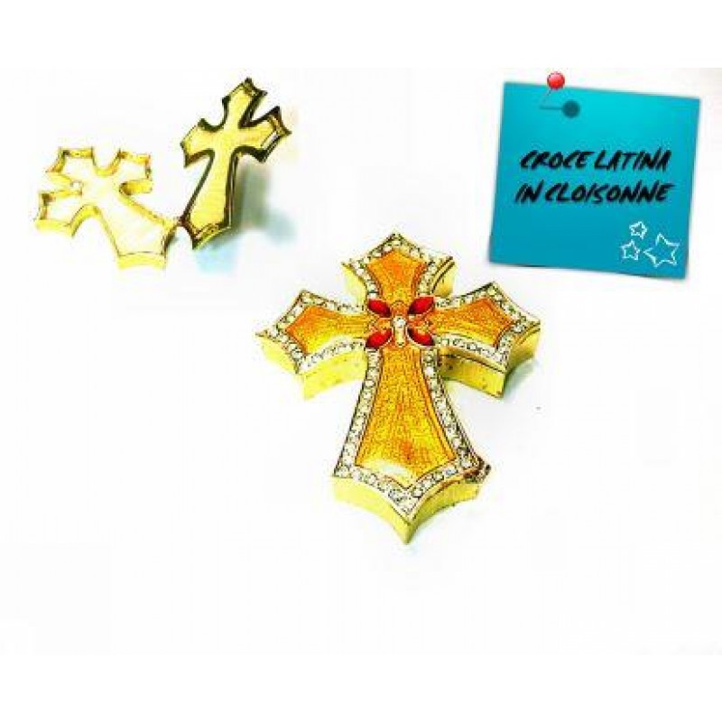 CROCE LATINA COFANETTO PORTAGIOIE IN METALLO LACCATO CLOISONNE. 10X8X2Cm.