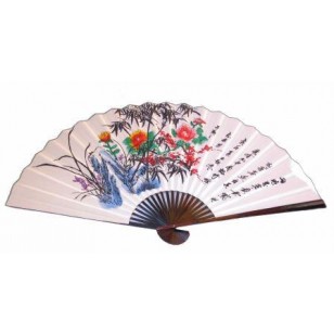 SPLENDIDO VENTAGLIO IN LEGNO E STOFFA DI FATTURA ARTIGIANALE DA ESPOSIZIONE A PARETE DACOLLEZIONE.