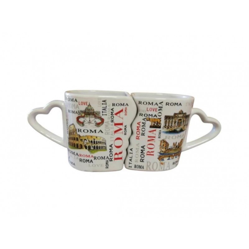 Un ricordo romantico di Roma Tazze a Coppia Souvenir Roma con il manico dell'impugnatura a forma di cuore, avvicinando le due tazze si formano due innamorati che si baciano. Le tazze a coppia e' un bellissimo ricordo romantico e un indimenticabile souvenir da Roma.