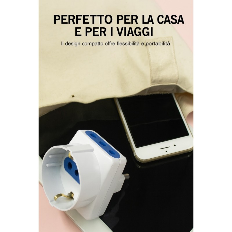 - Adattatore Tripla Spina 10A 2 Prese Italiane 10A + 1 Presa Schuko 10A Bianco C-XSL1105