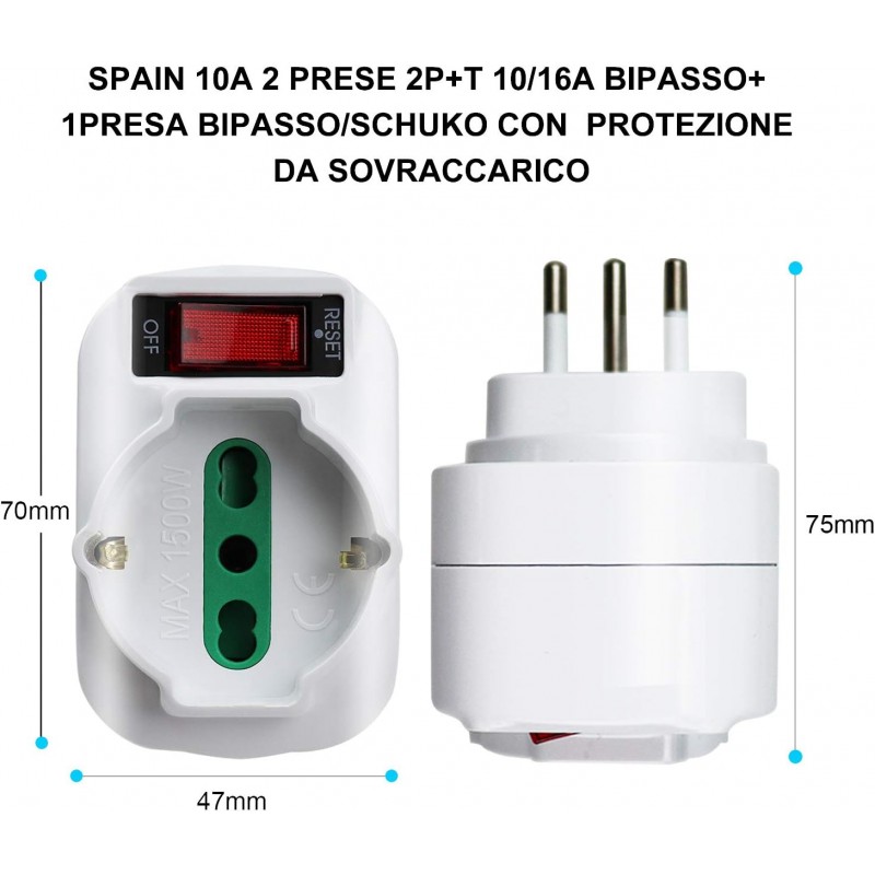 - Sicuro: interruttore luminoso on/off, potenza max: 1500w, prese con alveoli schermati,Spina 10A