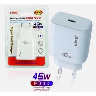 Caricatore Rapido USB-C PD 3.0 LinQ C4502 – 45W di Potenza per Ricarica Ultra Rapida