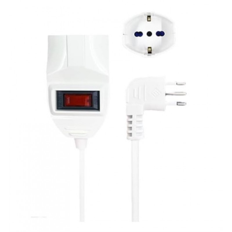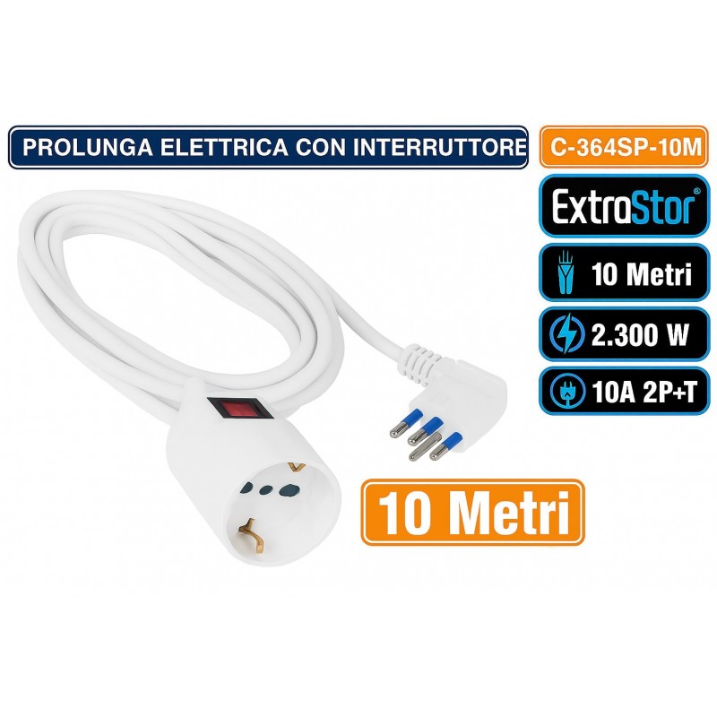 EXTRASTAR CAVO PROLUNGA BIANCO 10 METRI C-364SP-10M CON INTERRUTTORE E PROTEZIONE DA SOVRATENSIONE 2300W SPINA ANGOLARE 10A 2P+T PRESA BIPASSO+SHUKO