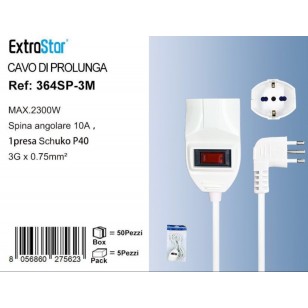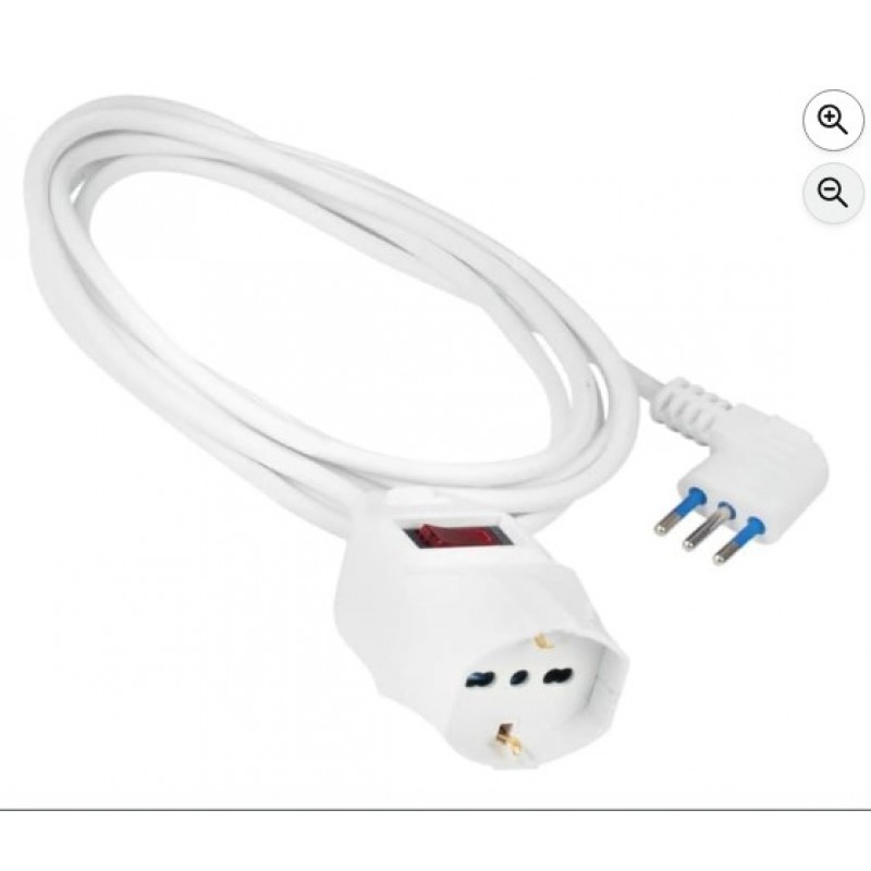 EXTRASTAR CAVO PROLUNGA BIANCO 3 METRI C-364SP-3M CON INTERRUTTORE E PROTEZIONE DA SOVRATENSIONE 2300W SPINA ANGOLARE 10A 2P+T PRESA BIPASSO+SHUKO