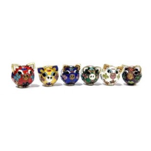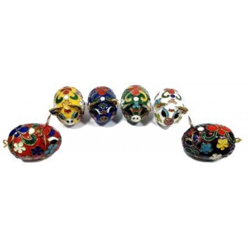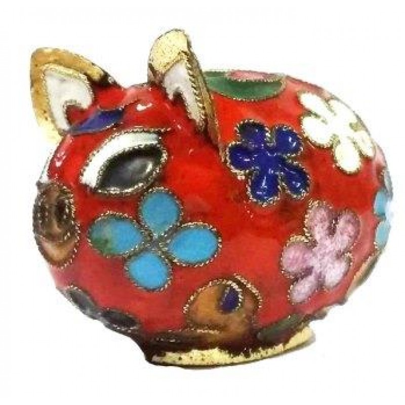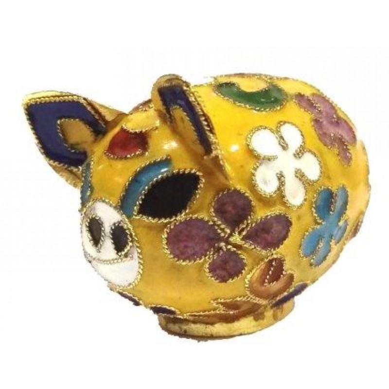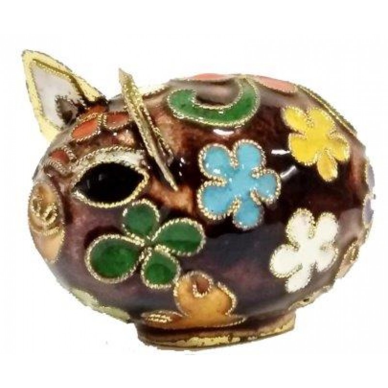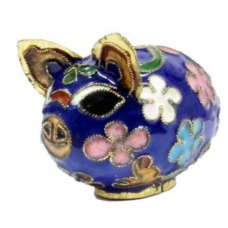 Maiale Maialino in Bronzo Smaltato Cloisonné Cinese 6 Colori