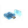 Comodissimo MemoryCard Reader USB delle dimensioni di una normale pendrive, permette di leggere memory card nei formati SD/SDHC/MMC/microSD /microSDHC /RS-MMC e varianti più recenti, di qualsiasi capacità: da 256MB fino a 32GB, trasformandoli in una pendrive piccola e versatile. Non necessità di driver e funziona su Windows XP , Windows Vista e Windows 7.
