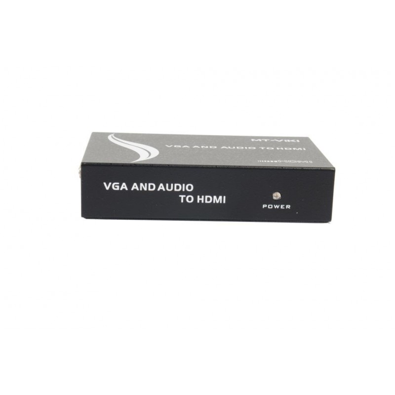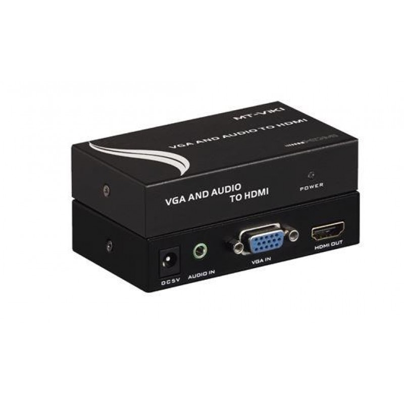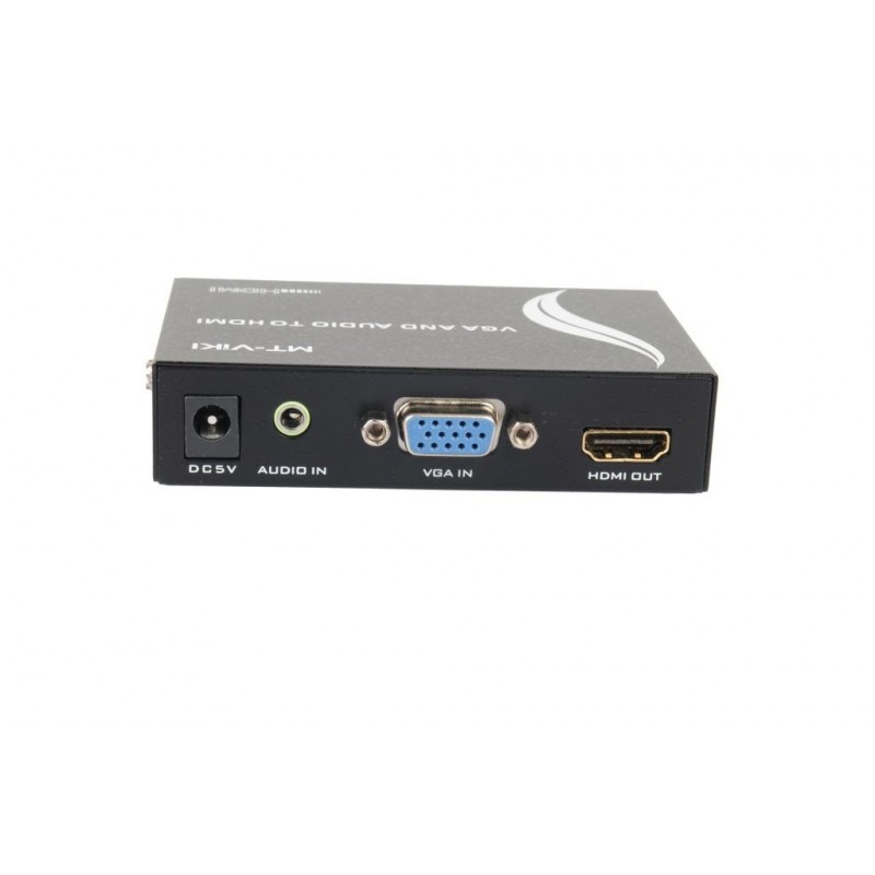 The MT-VH202 is the converter that transforms VGA signals and Audio signals to HDMI signals via HDMI cables.