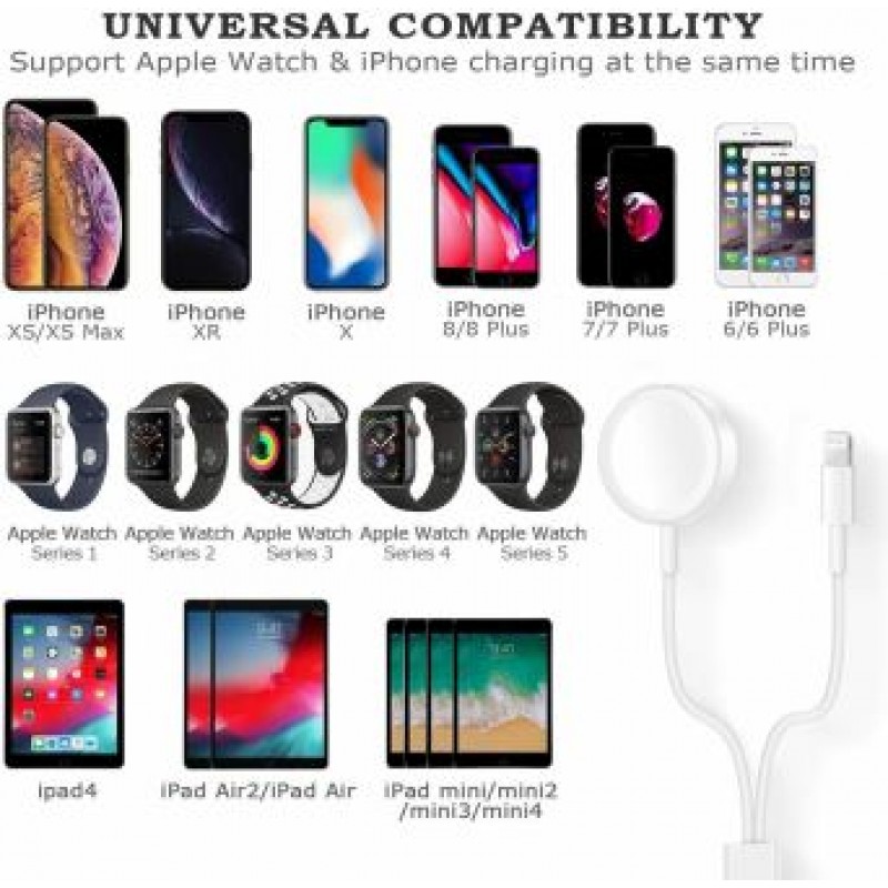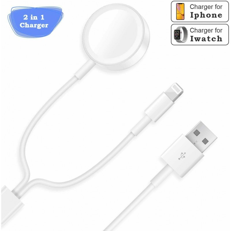 Cavo di ricarica USB magnetico per ricaricare il tuo Apple Watch facilmente. Ricarica a induzione QI. e cavo lighting Dotato di un potente sistema magnetico, ideale per tutti i modelli di Apple Watch. Lunghezza ideale del cavo: 1,5Mt.