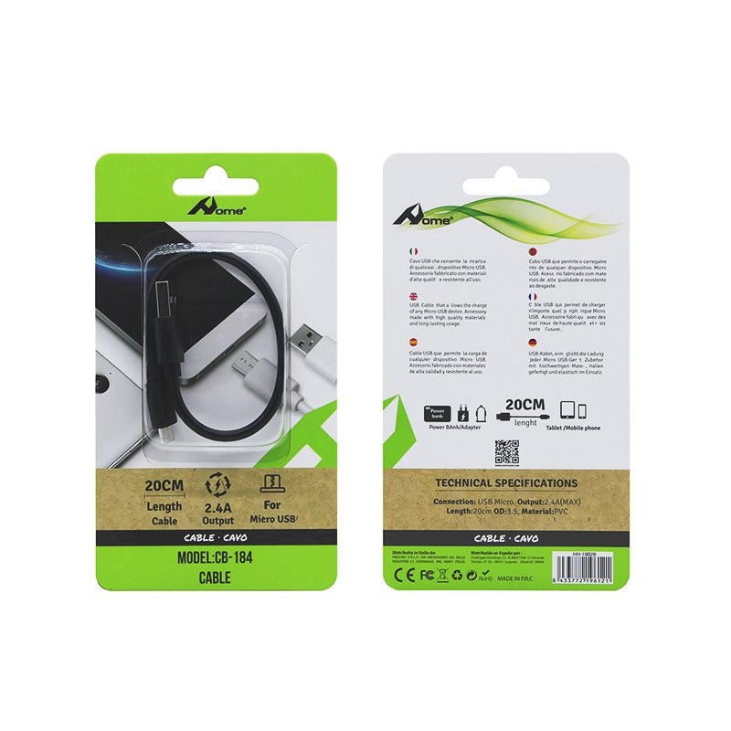 - CAVO COMPATIBILE 20CM USB 2.0 MICRO USB NERO BLACK