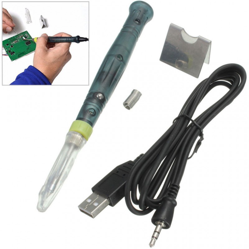 Mini saldatore professionale 5v 8w alimentato da USB con indicatore di LED. Piccolo e compatto per una portabilità rapida del calore e il recupero istantaneo. La punta può essere sostituita facilmente e ha un cappuccio di protezione. Si riscalda in meno 15 secondi e si raffredda in meno 30 secondi. Toccando il punto metallico sul corpo della penna si accende il indicatore LED e il lavoro può essere avviato. Se lascia l'oggetto inutilizzato per 25 secondi, il LED luce si spegne e la penna entra in modalità di stanby automaticamente e toccando di nuovo il punto di metallo per riavviare.