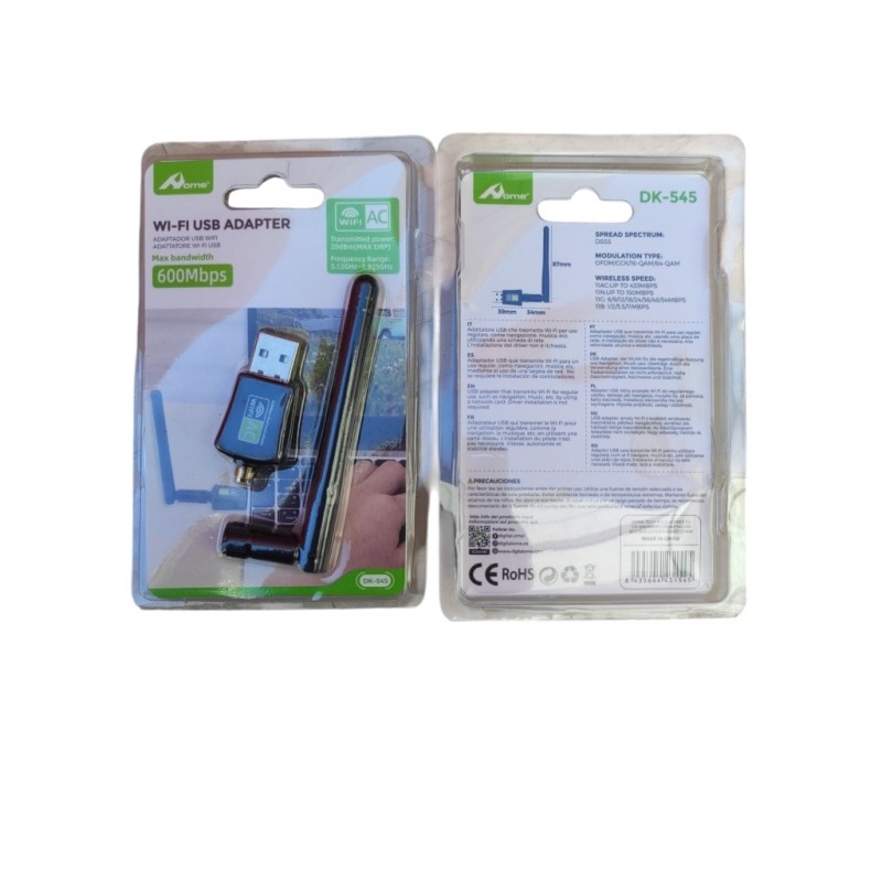 HOME Adattatore USB Wi-Fi AC WI-FI 5 O STANDARD 802.11AC 2.4GHz+5GHz Dual Band 600Mbps – Modello DK-545