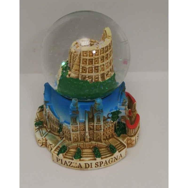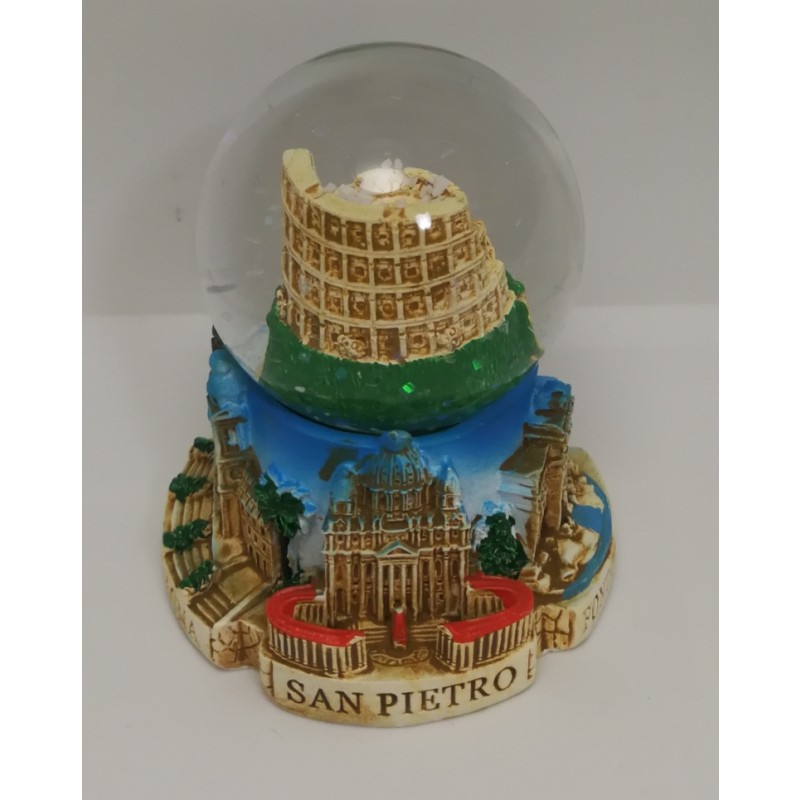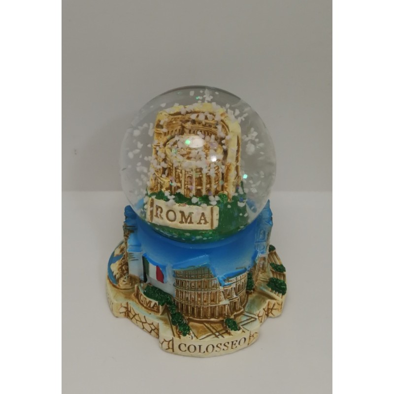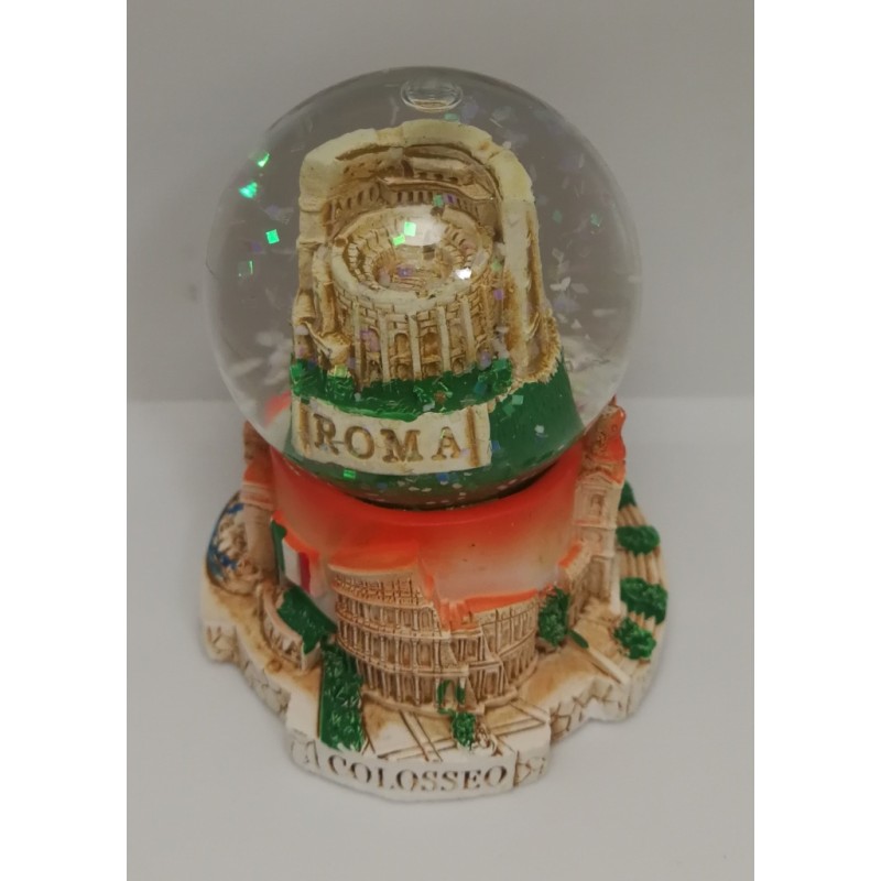 SPLENDIDA PALLA DI NEVE COLOSSEO IN VETRO E RESINA DIPINTA A MANO