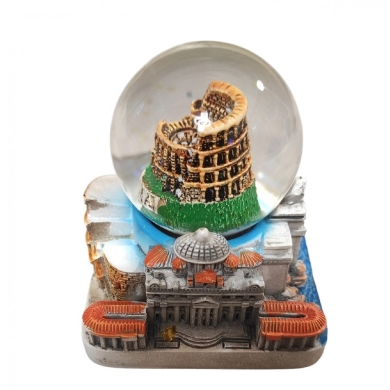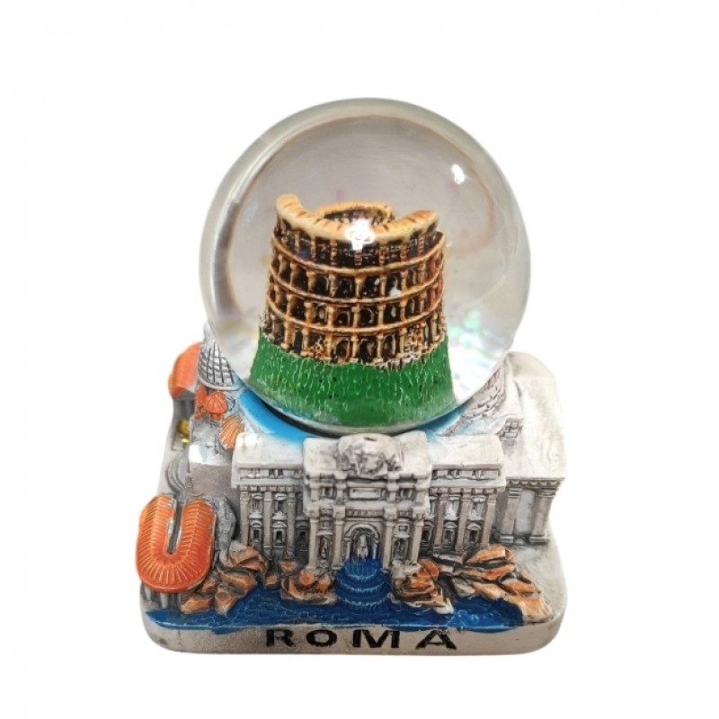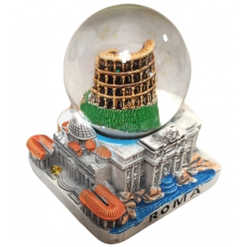 - PALLA SFERA DI NEVE BOLLA VETRO ROMA COLOSSEO MEDIO BASE QUADRATO SOUVENIR ROME