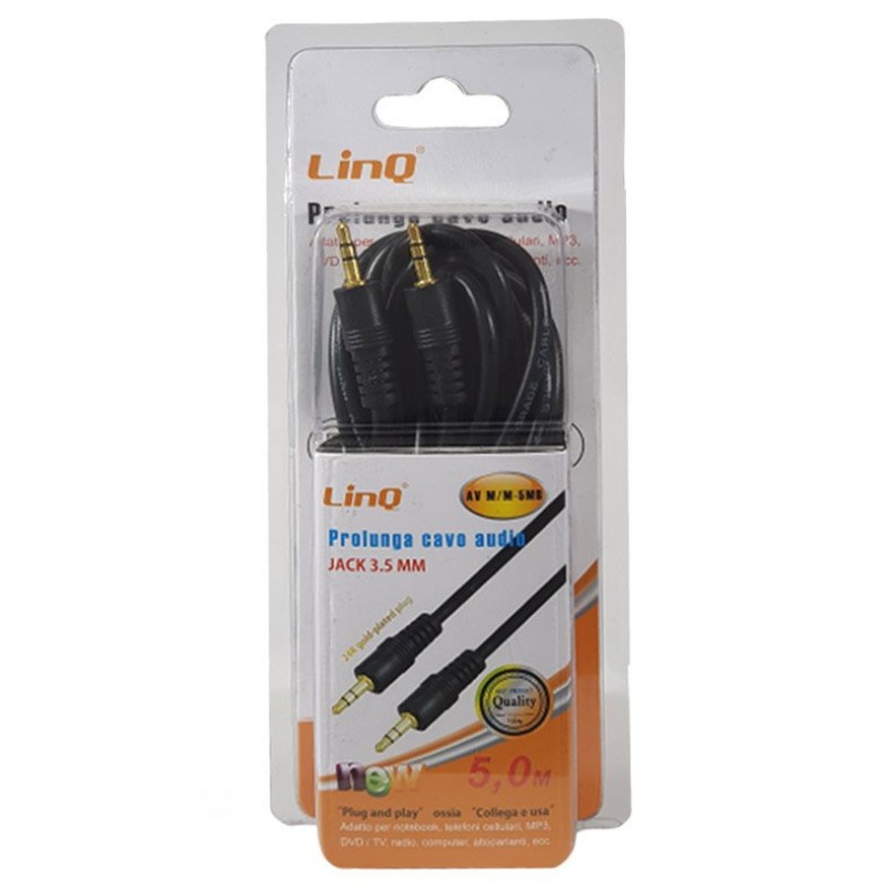 - PROLUNGA AUDIO JACK 3,5 MM MASCHIO/MASCHIO 5 METRI NERO AUX