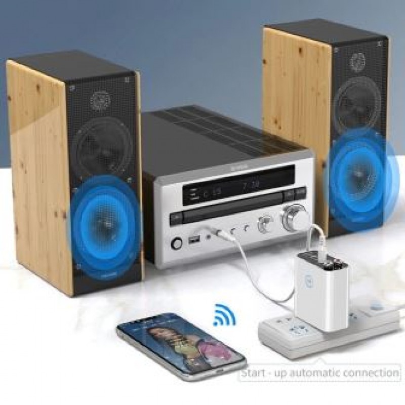 Ricevitore e trasmettitore Bluetooth Bluetooth 5 in 1 offre le modalità TX / RX. Con la modalità TX, può trasferire il suono del televisore incompatibile con i dispositivi Bluetooth, come ad esempio cuffie di trasmissione. Con la modalità RX, può ricevere l'audio del tuo dispositivo Bluetooth, come il trasferimento di un telefono su un dispositivo stereo che non possiede la funzione di Bluetooth. Compatibilità estesa, questo adattatore ricetrasmettitore può essere ampiamente utilizzato su computer, laptop, impianto Hi-Fi, cuffie, smartphone, lettore MP3, lettore CD, handfree, musica stereo, home theater RCA casse altoparlanti, video giochi e consolle.