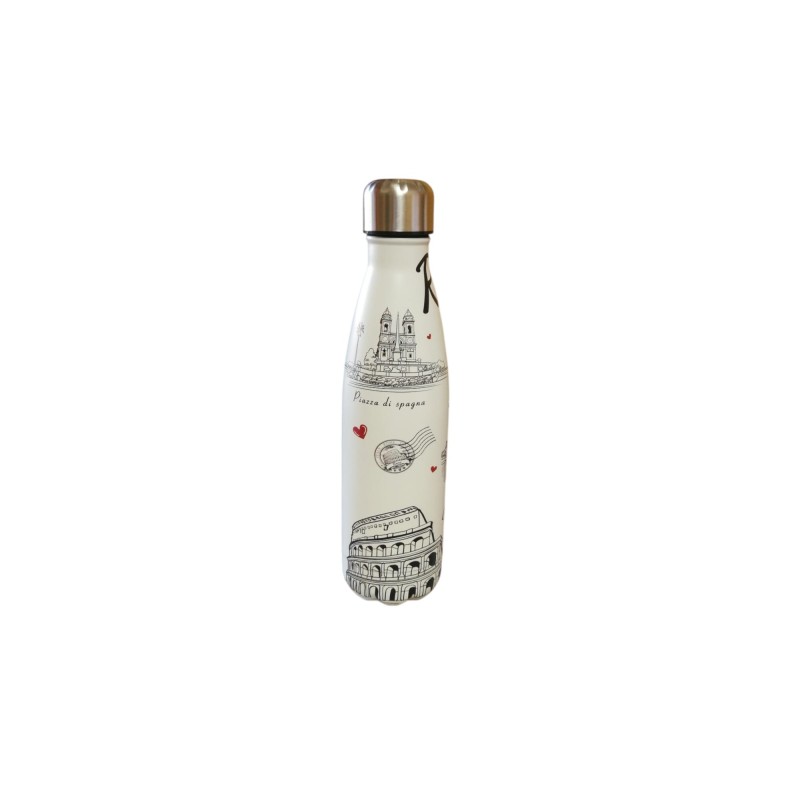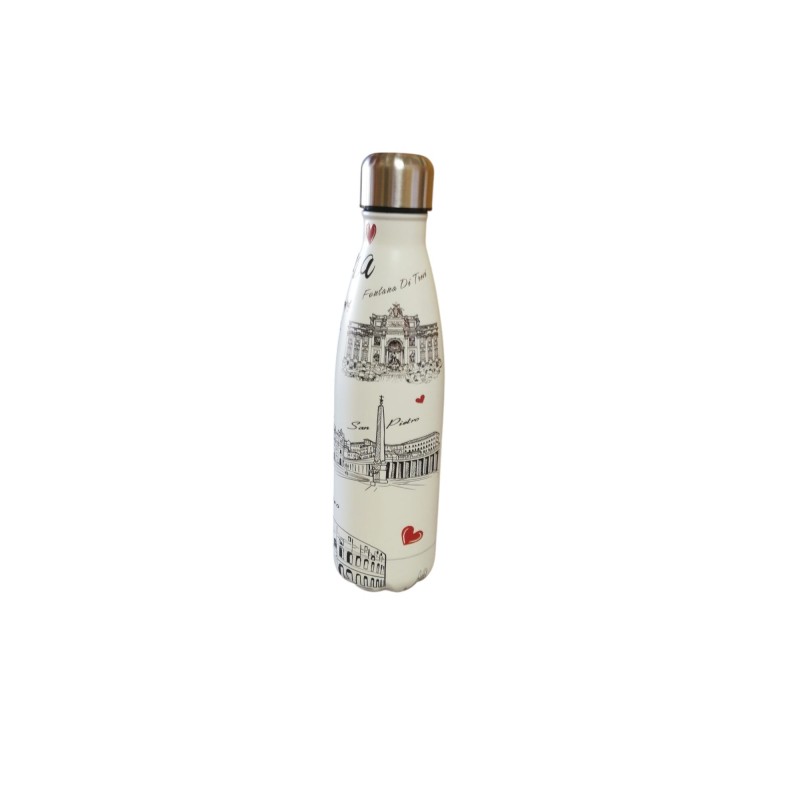 La borraccia termica 500 ml con doppia parete isolante in acciaio inox (ROMA 5672) e' uno dei nostri articoli piu' venduti, ideale per mantenere le bevande alla temperatura desiderata durante tutta la giornata. Grazie alla doppia parete isolante, questa borraccia e' perfetta per chi desidera una soluzione pratica e duratura per le proprie bevande, sia calde che fredde. Realizzata in acciaio inossidabile, la borraccia e' robusta e resistente, garantendo un'ottima conservazione della temperatura e una lunga durata nel tempo. Design personalizzato con i luoghi e dettagli della Citta' Eterna Roma.
