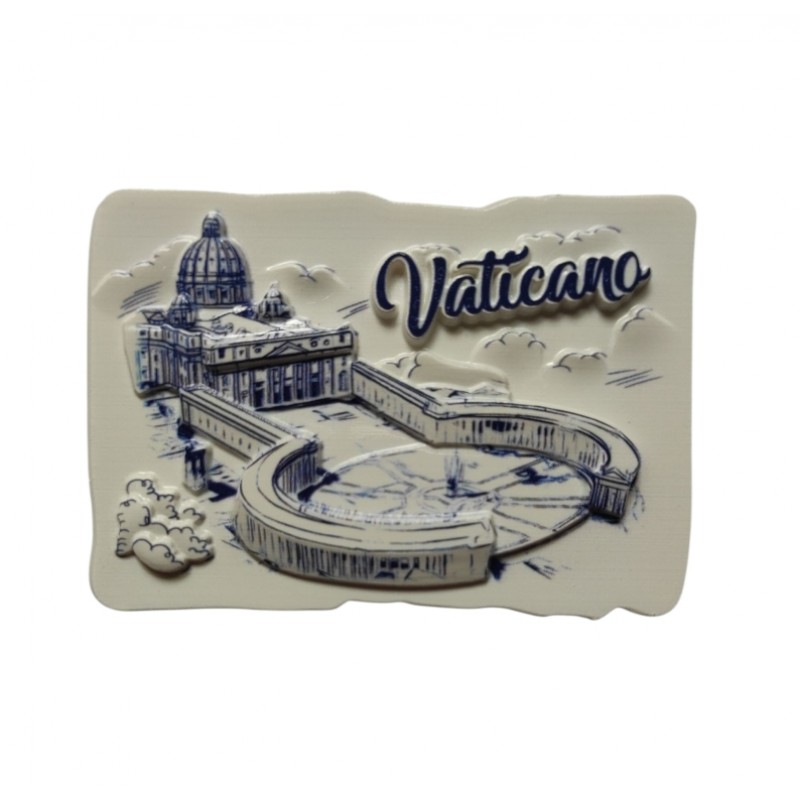 Il design monocromatico in blu e bianco dona un tocco classico e raffinato, perfetto per chi ama lo stile sobrio ma ricco di significato. La scritta “Vaticano” in caratteri corsivi aggiunge un dettaglio distintivo, rendendo questa calamita un omaggio discreto ma potente alla città simbolo della cristianità.