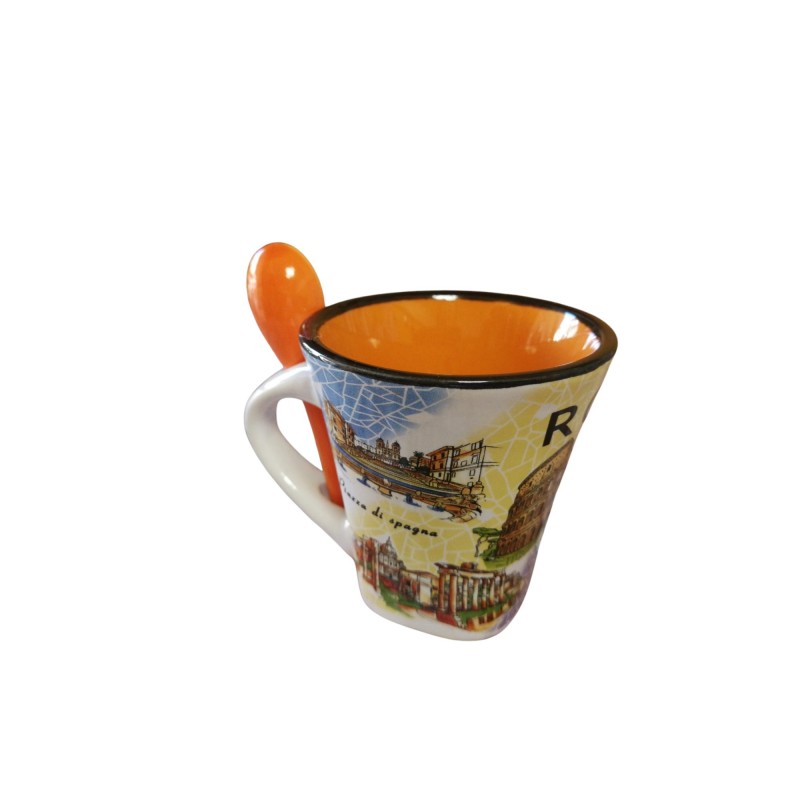 Tazza Tazzina da Caffe' con il cucchiaino Souvenir Ricordi Roma 5684