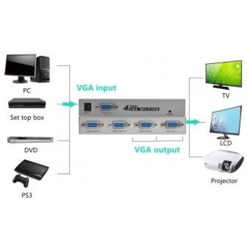 - Video Splitter 4 vie VGA 150 MHz 1 INPUT 4 OUTPUT